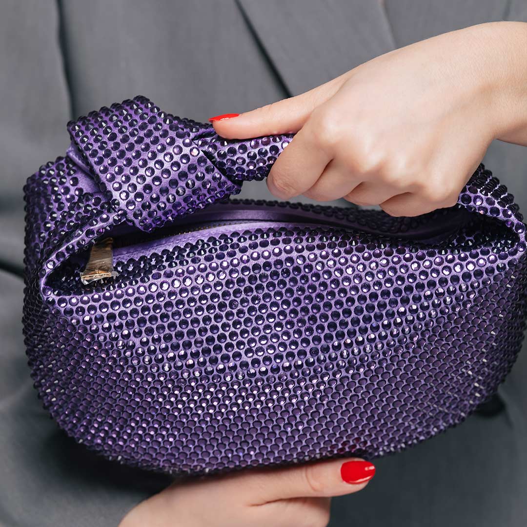 Upečatljiva statement torbica izrađena je od kristala u svijetlo ljubičastoj boji, dok je unutrašnjost izrađena od kože. Diamond Purple, osim što je prikladna za večernje kombinacije, zadužena je da podigne svaki tvoj outfit. Savršeno se uklapa i uz jednostavne, minimalističke kombinacije u kojem će torba biti fokus outfita.